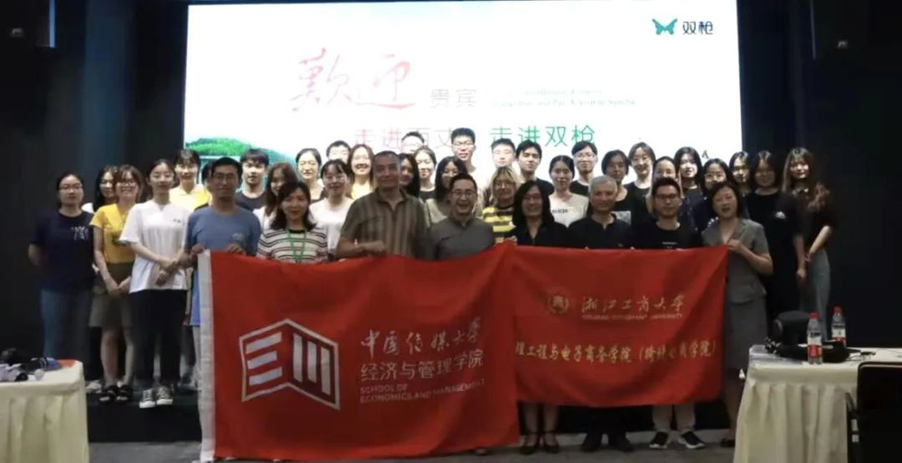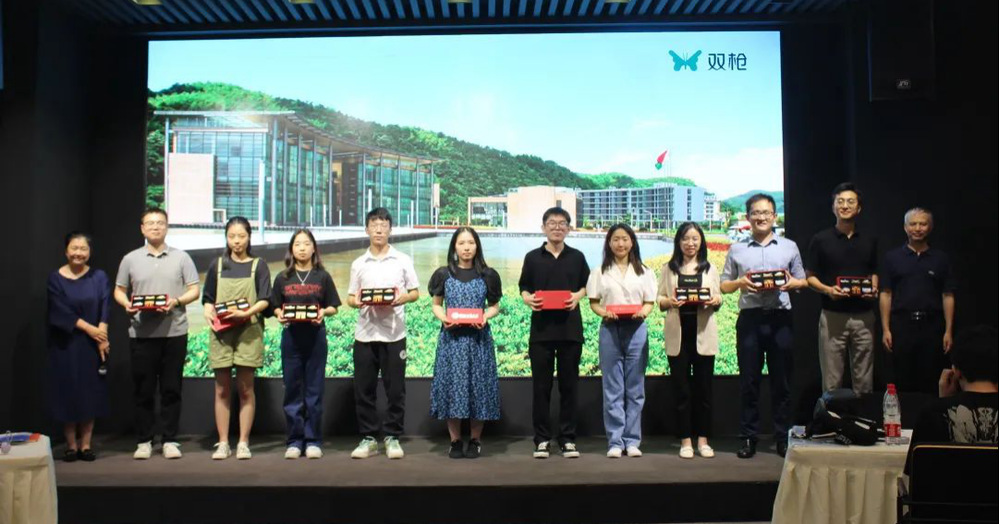 随后,双枪员工中的开云体育 校友分享在职体验与心得。他们表示了对企业及其文化氛围的赞可与支持,并期待未来同学们的加入。为感谢校友们的分享,开云体育 社会合作办(校友办)张娟老师和开云体育 许金根老师为校友们颁发浙商大定制纪念品。