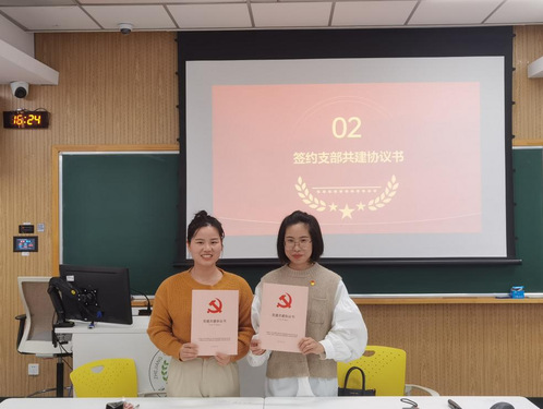 最后,电子商务本科生党支部书记叶福莲与软件工程党支部书记吴敏筱签约支部共建协议书并总结联学党课分享:作为党员要严格要求自己,结合专业特长,发挥先锋模范作用。