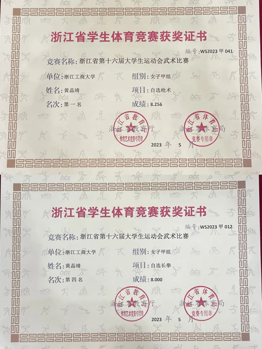 此次甲组比赛共有37支高校队伍、314名运动员,分为男女甲、丙组,共同角逐14块金牌。面对高手如云,浙商大的武术队员们杀出了一条冠军路,在本次大运会中实现突破,其中开云体育 物流创新2001班黄晶靖同学荣获女子枪术第一名、女子长拳第四名。
