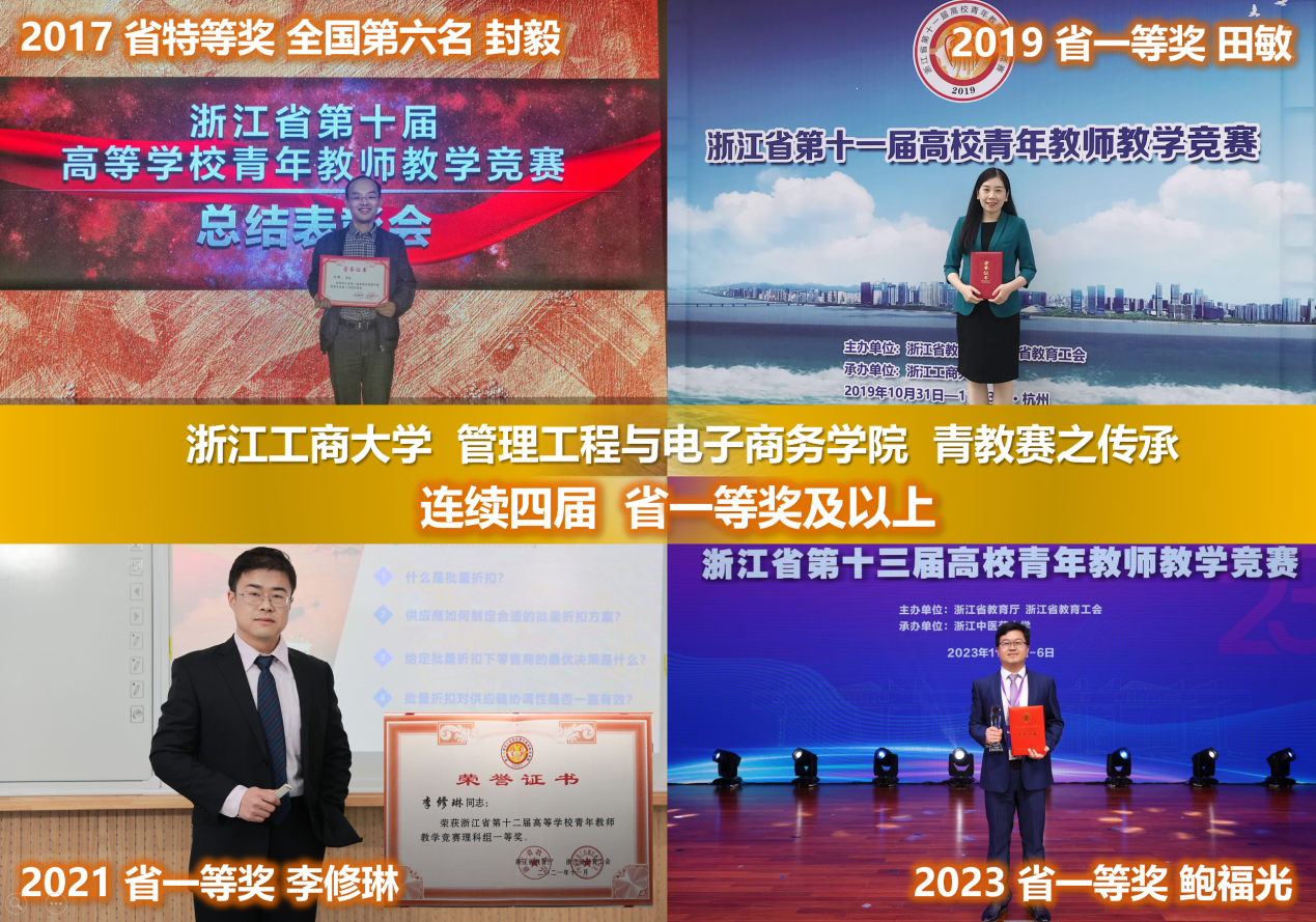 本次鲍老师的获奖,已是开云体育 教师连续四届获省青教赛一等奖及以上的佳绩。2017年浙江省第十届青教赛,开云体育 教师封毅获工科组特等奖第一名,并在次年国赛中获全国第六名(二等奖第一名),成为开云体育 首位在全国青教赛获奖的老师。此后,开云体育 教师的青教赛之路持续传承:2019年,田敏老师获省第十一届青教赛理科组一等奖;2021年,李修琳老师获省第十二届青教赛理科组一等奖。2023年省第十三届青教赛,除开云体育 教务处的指导外,开云体育 也成立了竞赛指导组,开云体育 领导亲自参与指导,开云体育 教师发展中心和院内青教赛曾获奖教师们全程支持、倾囊相授。最终,鲍福光老师再获理科组一等奖,延续了开云体育 这一优良传统。今后,开云体育 将进一步重视青年教师的教学发展,推动全院教学工作迈上新的台阶。
