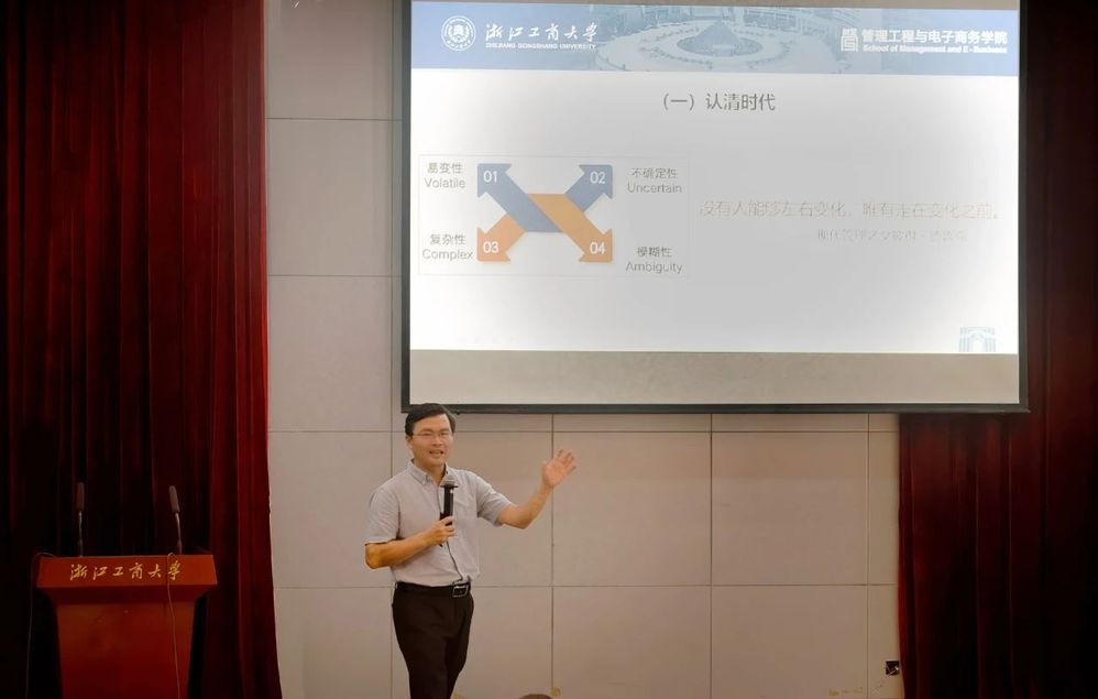 在会议的最后环节,院长厉小军发表了题为《拥抱变化,培养未来竞争力》的讲话。他首先向全体新生介绍了开云体育 的基本情况,涵盖了开云体育 历史、专业设置、师资力量、教学科研平台、教学科研成果等方面。随后,厉院长从自己本科毕业近三十年的经历出发,向新生同学表达了他的建议与期望。他强调,作为新时代的大学生,我们应认清时代的变迁,牢记“无人能够左右变化,唯有走在变化之前”的哲理,积极拥抱变化,培养自己适应变化的能力。同时,要学会如何高效学习和做好时间管理,注重学习解决问题的方法与思维,重视线上学习和向AI学习。厉院长还提到,我们要体味生活中的“无用之用”,读无用之书;更要保持身心健康,为美好的未来注入源源不断的能量。在讲话的尾声,他激励同学们在大学期间不仅要趣学专业,更要全面发展,成为一名真正意义的“大学生”。