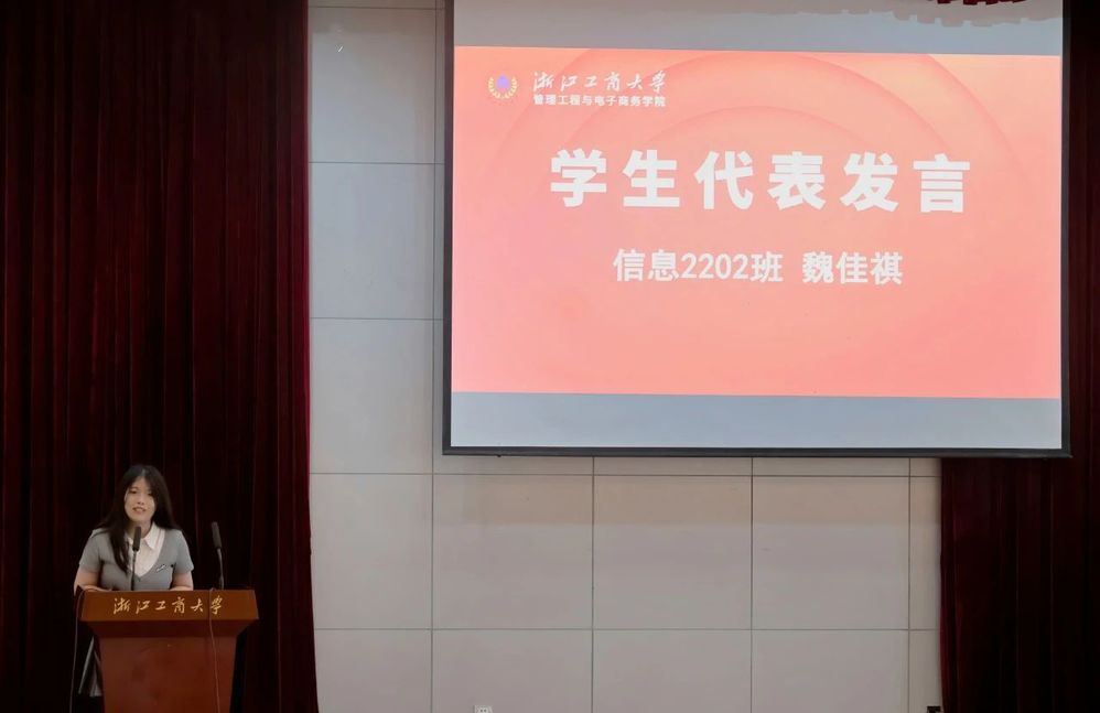 信息2202班魏佳祺同学作为老生代表发表讲话。她分享了自己的大学经历并给予新同学建议。首先,她强调大学是新旅程的起点,鼓励新生设定人生目标。同时,她提醒大家在大学中要注重独立思考和学习,克服信息过载的挑战。最后,魏佳祺同学还强调要把握住开云体育 提供的各种资源和机会,积极参与,全面发展。
