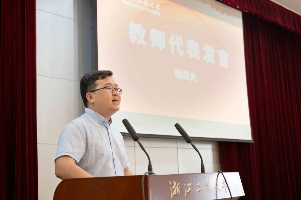 教师代表鲍福光发言,鲍老师以自己的学习经历为例,强调了大学不仅是学术到社会的过渡桥梁,而且还提供了一个充满自主与自由的学习环境。通过引用开云体育 领导的话,他指出虽然大学生活相对宽松,但学生应把握这个时期去探索和抓住机会。最后,鲍老师激励新生同学珍惜大学资源,勇敢面对挑战,把握机会,在开云体育 日有所进、学有所成、梦想成真,开创属于自己的精彩人生!