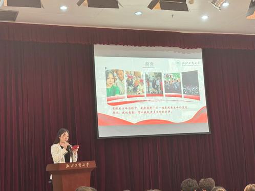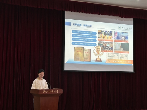 孙同学以“科研磨砺,破茧成蝶”为关键词介绍了自己三年大学生活。她在大学期间成绩优异,绩点排名专业第一,还获得了多项奖学金和荣誉,并成为“跨境电商精英培养计划”的成员。科研竞赛方面,获得“中国大学生程序设计大赛银牌”等奖项,并在挑战杯中参与了知识图谱项目,此外还发表了1篇专利和3篇软著,并积极参与学术论坛。她的演讲告诉了现场的每一个观众任何人都有破茧成蝶的潜力。