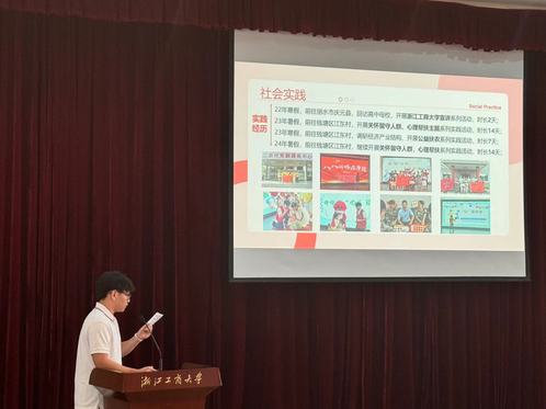 周星鑫从综合素质,学生科技,学生工作,社会实践四个角度入手向大家介绍了自己的大学生活。大学期间,他通过努力将成绩提升至年级前9%,获得奖学金并转入创新班。在实验室中,作为项目负责人带领团队赢得省级奖项并成功申请国家级创新创业项目。还积极参与学生工作,提升心理健康意识,服务新生,并在体育工作部做出贡献。社会实践上,关注乡村发展和心理健康,通过实际行动为乡村带来活力,传递精神。