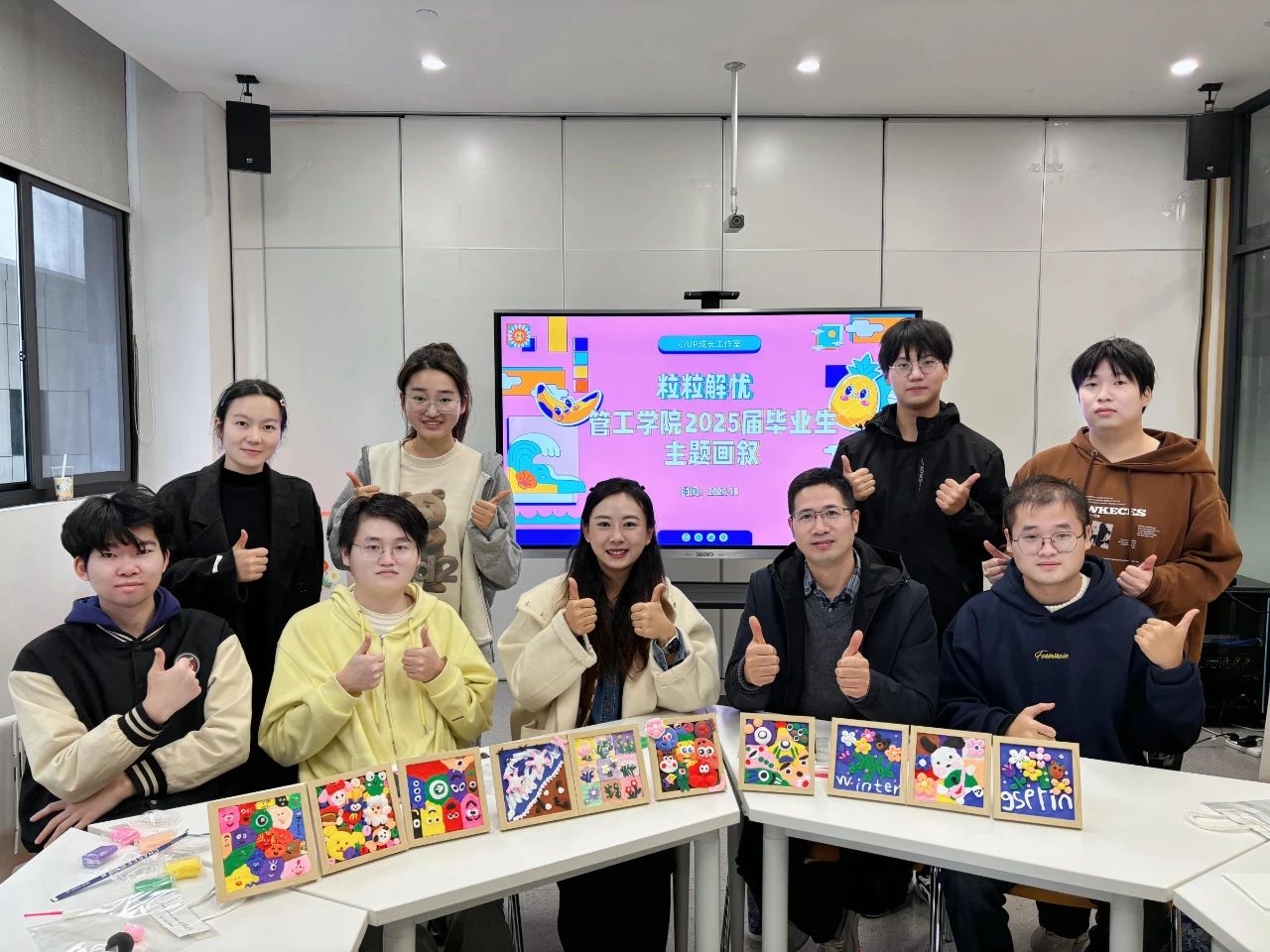 开云体育 秉承“用心陪伴每一位毕业生”的宗旨,围绕毕业生的职业发展需求和心理积极成长为切入点,创新活动形式,打造“既动手又动心,既抒发又关怀”的“解忧”模式。林瑜茂老师在现场针对职业困惑进行答疑解惑,帮助学生认清自我定位、明确前进方向。孙丽丽老师与学生一起分析作品中的情感表达,引导学生找到压力来源,提供个性化的缓解策略。同学们互相分享学习经验和实用技巧,帮助学业困难同学建立信心、突破瓶颈。