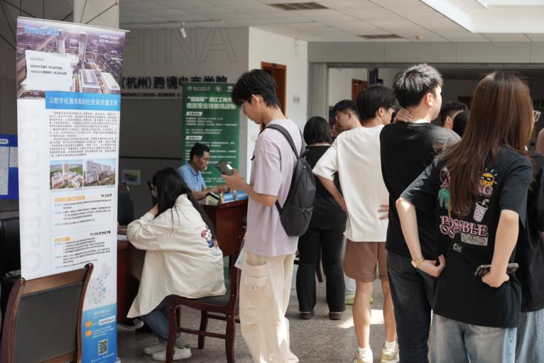 参与此次招聘会的企业广泛分布于计算机软硬件、计算机网络、信息系统和信息服务、物联网、IC设计、动漫游戏、电子技术、通信技术、无线电技术、电子商务、电子政务、物流管理等多个前沿领域,涵盖浙江省内各类产业行业企事业单位、通信运营商,以及科研院所、国有企业、外资企业等不同性质的单位。这些企业带来了大量与数智领域紧密相关的实习和全职岗位,从软件开发、数据分析到人工智能算法研究,再到电子商务运营等多种岗位类型,为学生们提供多样化的职业发展道路。