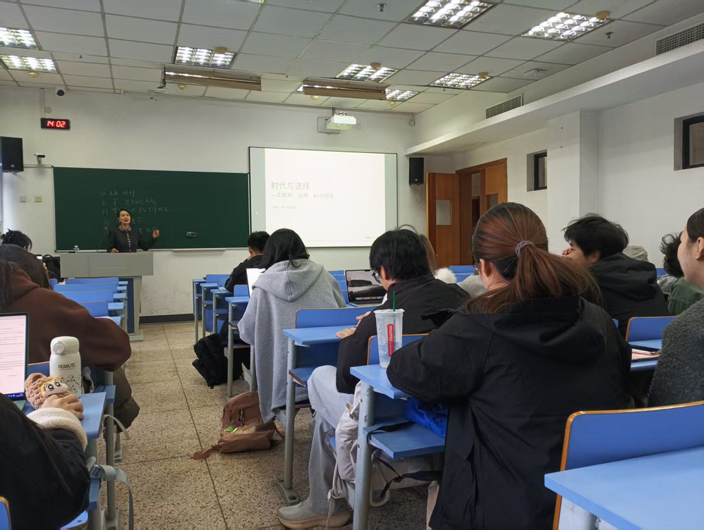 分享会上,深耕互联网行的张敏结合自身职业经历,拆解“互联网时代、品牌时代、AI时代”成长三部曲,提炼可复用的人生选择底层逻辑。她坦言,个人成长需紧扣时代脉搏,互联网时代要精准洞察需求、抢占赛道先机,品牌时代需从流量逻辑转向价值逻辑、解决真实需求;针对AI革命,她提出“AI是打造金饭碗的工具”的观点,鼓励学子培养人机协同能力,深耕高情感体验与深度垂直领域。同时,她分享三大务实成长心法:以终局思维倒推学习重点,构建“T型人才”无限游戏,在小步快跑的实践闭环中提升认知。互动环节,学子围绕需求发现、首份工作选择、创业恐惧克服等问题提问,张敏校友结合自身成败案例耐心答疑,分享结束后仍留场与学子深入交流。活动尾声,现场氛围热烈,充分彰显优秀校友对后辈的关怀与担当。