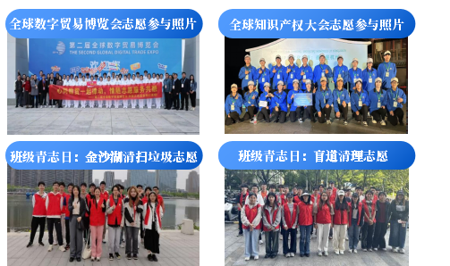 践公益:志愿者注册率100%,总服务时长2227小时(人均67小时);开展“金沙湖环保行”“雨花敬老院服务”等实践活动,14人次参与国际赛会服务。