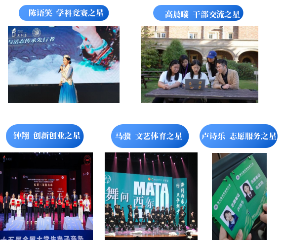 能力全:60%成员任校院干部(如卢诗乐任院青志主任,总志愿时长220小时);14人次参与全球数字贸易大会等重大赛会服务。